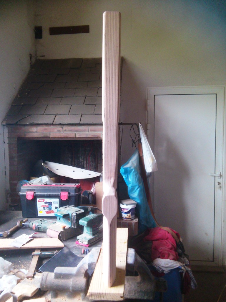 Para hacerla, he pegado 5 laminas con la forma de la plantilla, de fenolico de 10mm y cola de poliuretano.