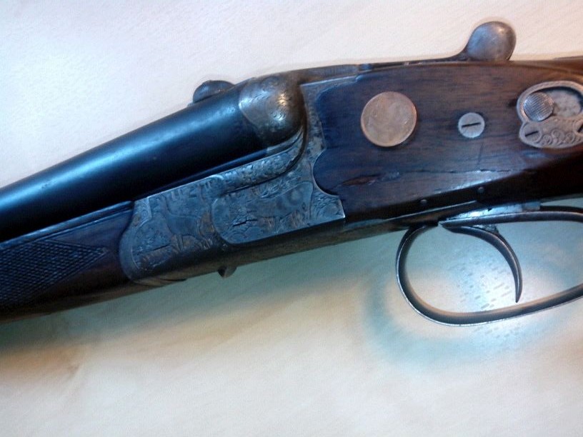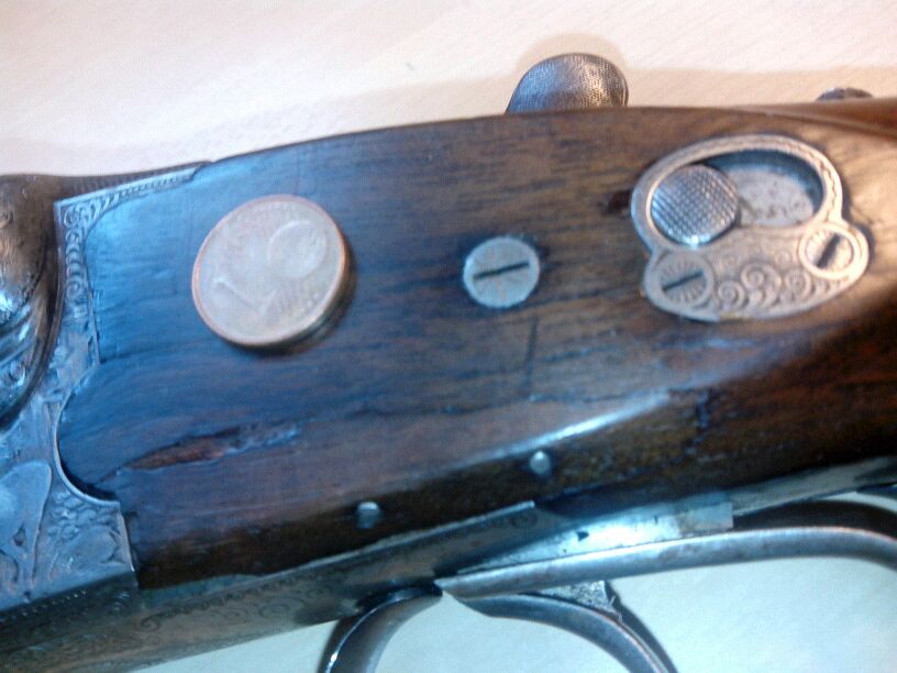 Hola, os comento un poco, dispongo de un arma, a la que en su dia se desprecndio un trocito de madera (desconozco la causa) , la pegaron y colocaron dos pequeños clavos de marqueteria,
