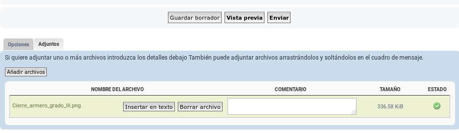 Había estado probando en opciones y no se me ocurrió darle en adjuntos.