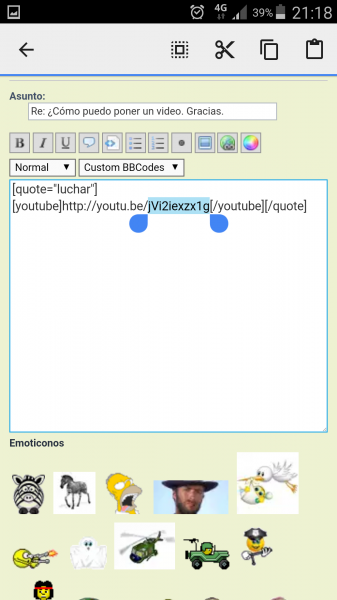 Otro es youtu.be/y lo que sigue es lo que tienes que cortar y pegar dentro del youtube ]codigo[ youtube