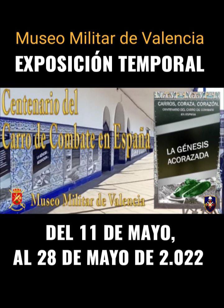 El Museo Militar de Valencia acoge, desde el día 11 de mayo, y hasta el 28 de mayo de 2022, una exposición sobre el Centenario de las Unidades Acorazadas del Ejército de Tierra.