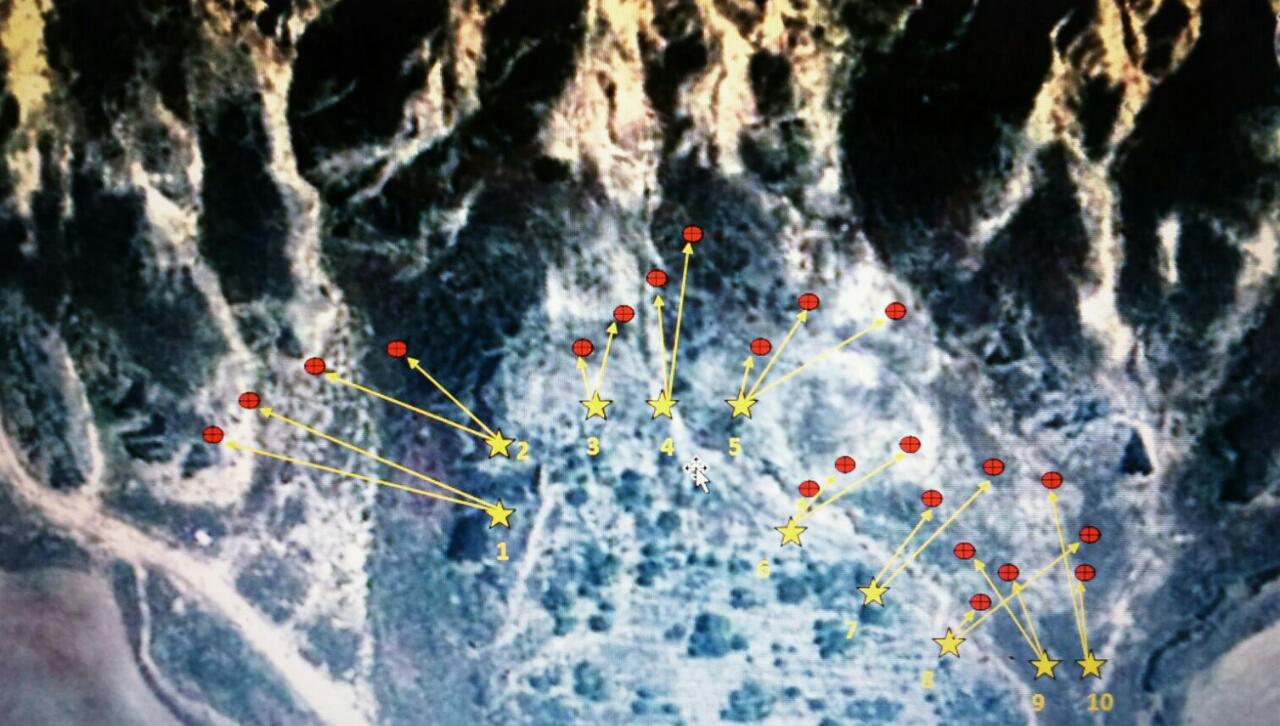 Unas líneas para colgar el plano hecho por nuestro secretario, para ver la ubicación del recorrido en U y de las calles de tiro, ya numeradas del uno al diez, y ver también la posición de las dianas.