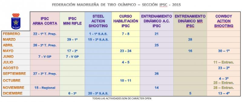 Adjunto calendario de las actividades de IPSC 2015 en Cantoblanco (Fed. Madrileña de Tiro Olímpico).