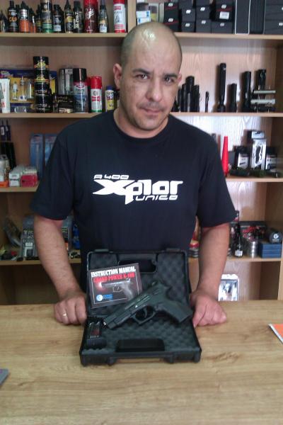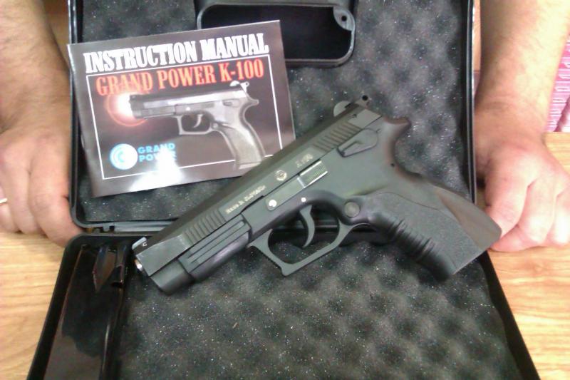el patrocinador ARMERIA TOP-GUN, ha decido sortear una pistola GRAND POWER k-100, de 9 mm, entre TODOS LOS PARTICIPANTES, en las fotos adjuntas vemos a Miguel Angel, responsable de TOP-GUN en Alicante, mostrando el arma a sortear.