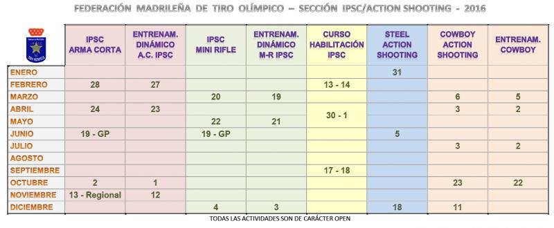 Adjunto calendario de las actividades de IPSC y de Action Shooting que están programadas por la FMTO en Cantoblanco (Madrid) para 2016.