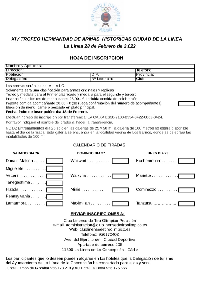 Re: XIV TROFEO HERMANDAD ARMAS HISTORICAS CIUDAD DE LA LINEA.