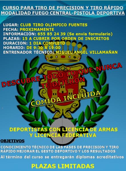 La Real federación Española de Tiro Olímpico tiene previsto Iniciar en nuestras instalaciones, el próximo 21 de mayo un nuevo curso para la obtención de la Licencia de Armas tipo "F".