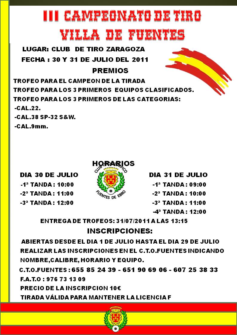 III CAMPEONATO DE TIRO OLIMPICO VILLA DE FUENTES A CELEBRARSE LOS DIAS 30 Y 31 DE JULIO EN EL CLUB DE TIRO ZARAGOZA