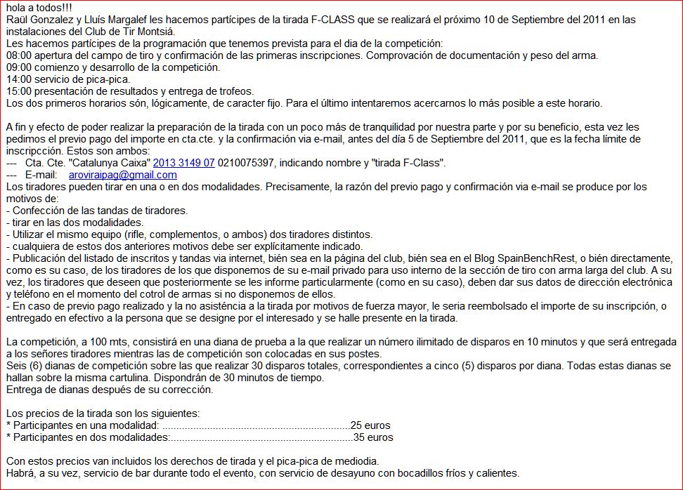 Para los amantes de la F-Class quiero recordarles este nuevo evento, que a continuación incluyo dos recortes del mismo...