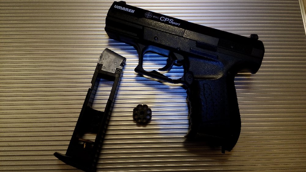 Vendo pistola CO2 Walther Umarex CP Sport calibre 4, 5. Cargador para 8 balines, semiautomática. Practicamente nueva, muy poco uso (aprox. 800 disparos realizados, unas 10 bombonas), es una pistola robusta y de gran calidad. Entrega en mano en Sevilla o Cádiz.