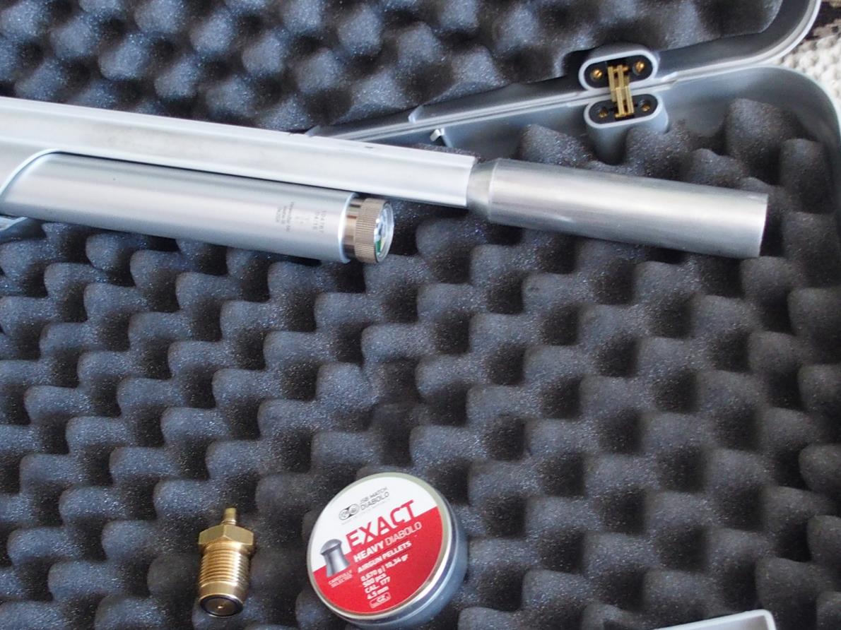 Carabina especial para Field Target fundamentalmente, con 16 julios de potencia estabilizada; cambiada la culata de plastico original por madera estupenda, incluye apoyamanos de aluminio y madera con inclinacion personalizada variable. La bombona de aire es valida hasta 2026. Tambien como añadidos lleva un gatillo de competicion mas comodo que el original y una bocacha de quita y pon. La carabina se entrega en estuche acolchado