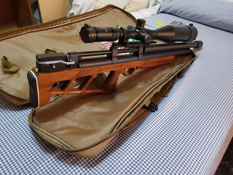 le puse un moderador neumatico ,muy silenciosa suena mas el impacto que la carabina ,
