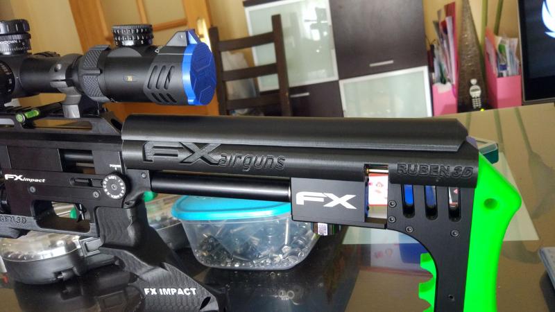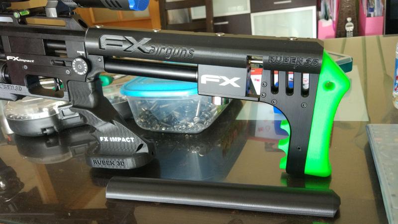 El diseño es más largo que el original,llegando hasta el carril de 22mm y un suplemento que se coloca encima con imanes de neodimio que se puede elevar según necesidad, esto se realiza suolementando los imanes o bien si se conoce la medida haria esa pieza a medida, con este sistema la carabina se puede guardar en su maleta sin necesidad de modificar la espuma está.