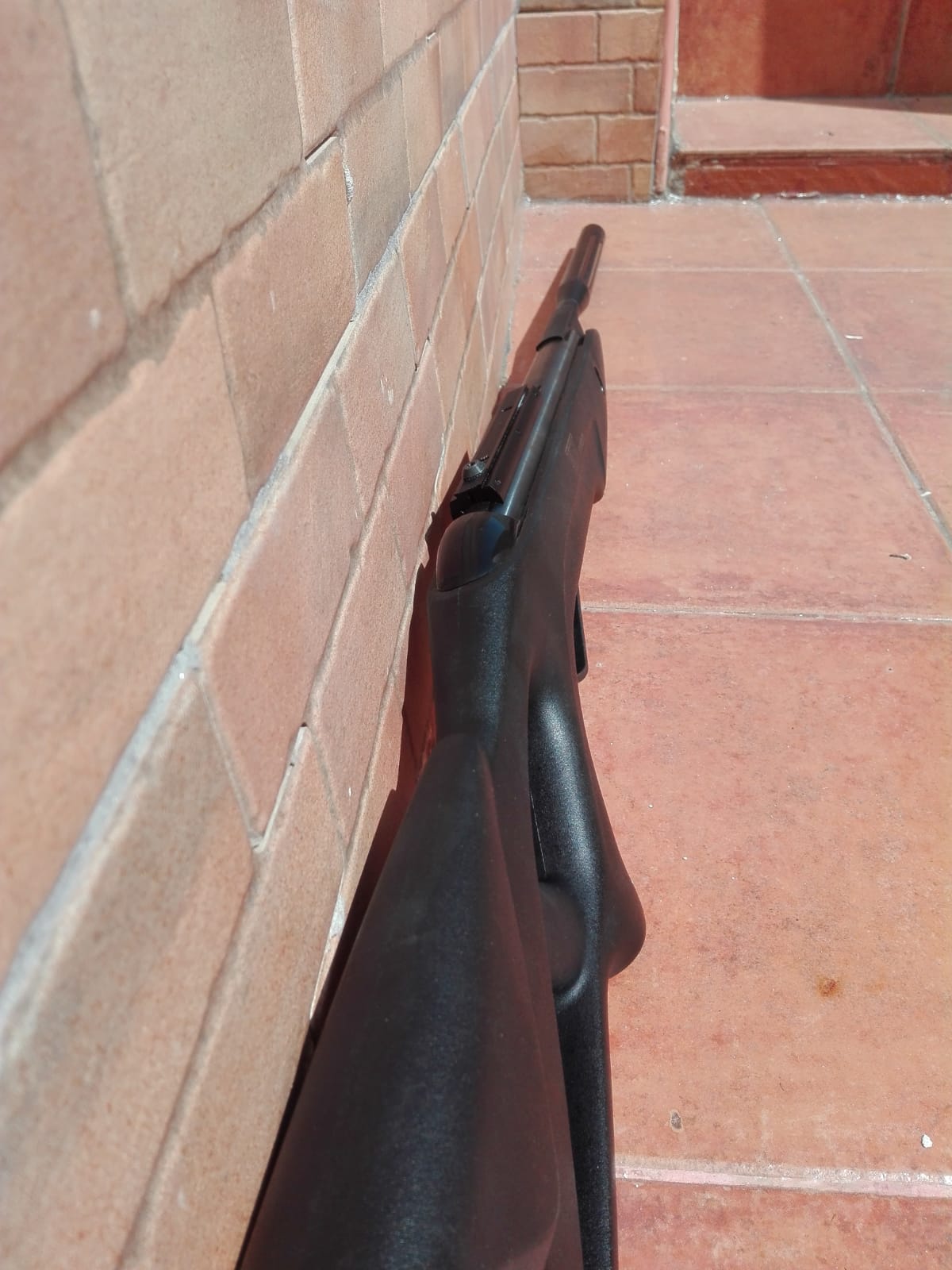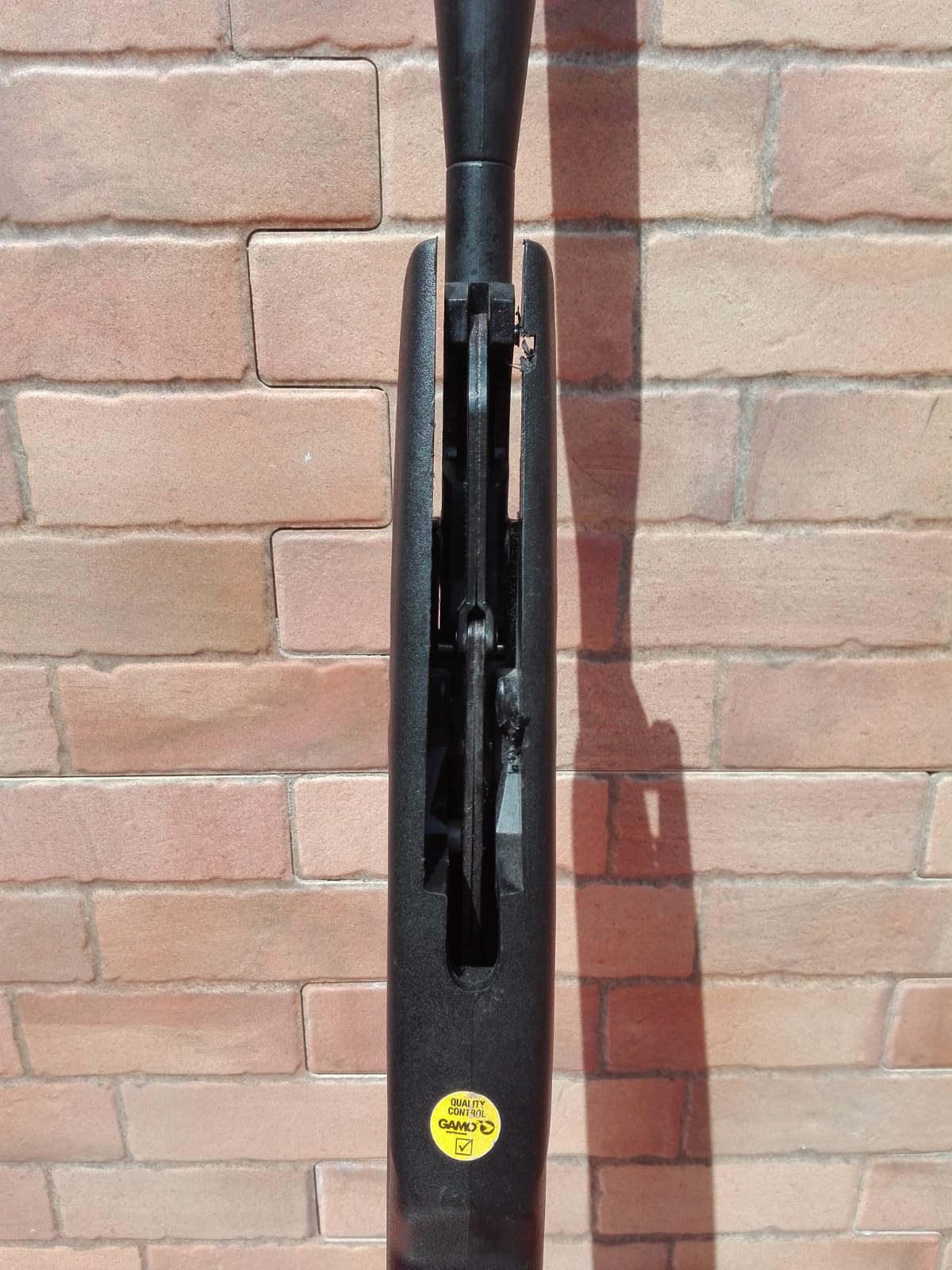 Vendo carabina de aire comprimido bull whisper igt 5.5, funciona a la perfección con algunas marcas del uso que se pueden ver en las fotos, en la cantonera y por debajo el plástico. Hace unas marcas igual que muchas carabinas mucho más caras. Tiene el carril para el visor recién puesto nuevo para darle mayor firmeza al visor. Vendo por haberme pasado a otro tipo de carabina.