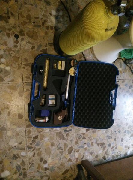 vendo match guns mgh1 hybrid con botella de recarga de 300 bar llena , 2 botellas para la pistola que caducan en el 2022 ,con cacha talla m sin tocar solo masilla que se le ha retirado,adaptador de carga para la botella,2 puntos de mira y herramientas .esta como nueva perfecta de funcionamiento. la vendo por dejar la afición. 850€