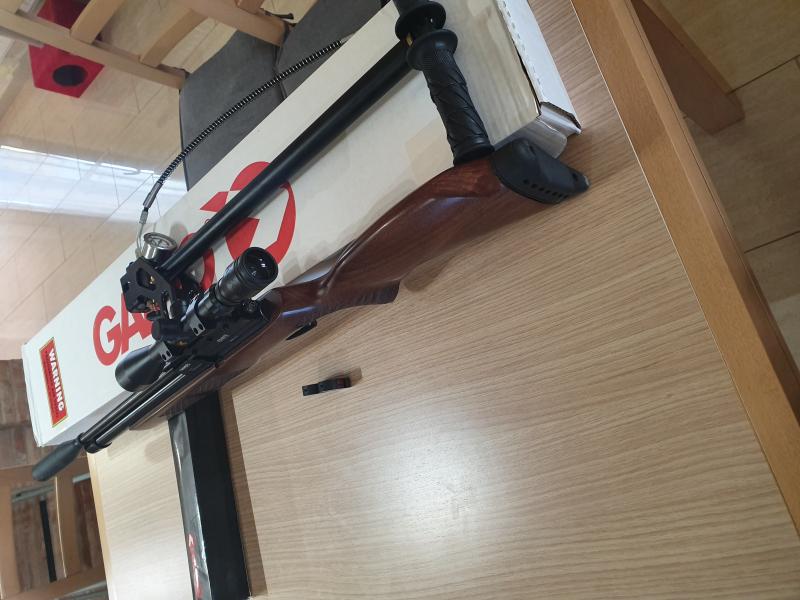 Incluye carabina pcp Gamo Coyote con culata de madera y silenciador wisper.