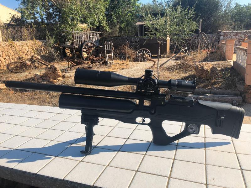muy precisa en ambos calibres con botella de 500cc culata de polímero bipode y maleta