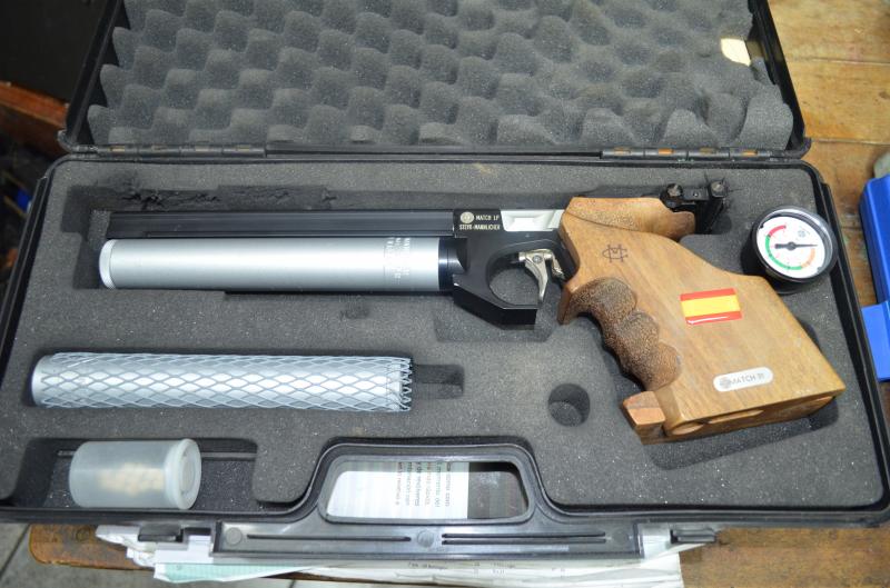 pistola de aire comprimido con dos botellas y manometro para ver la carga con las cachas morini calibre 4,5 y su maletin . El funcionamiento toda la vida perfecta y como dejo el tiro voy sacando todo pido por ella 400 euros con portes pagados