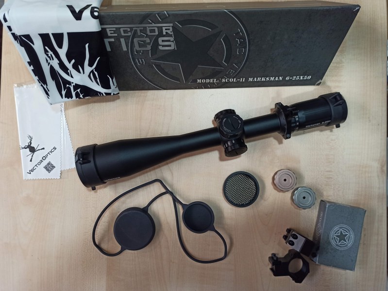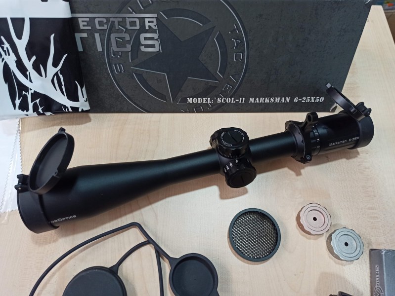 Buenas a todos, tengo por el armario este visor Vector Optics 6-25x50, totalmente nuevo, Lo tengo desde hace un año más o menos y no se ha llegado a montar en ninguna carabina. Es un visor bastante conocido, el compañero Alexis le hizo un vídeo https://www.youtube.com/watch?v=iUxM_j7PHWI