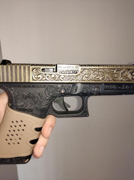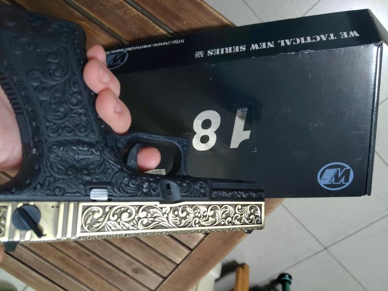 WE: GLOCK 18 CON GRABADOS POR TODA LA PISTOLA. GASCOMO NUEVA 120€