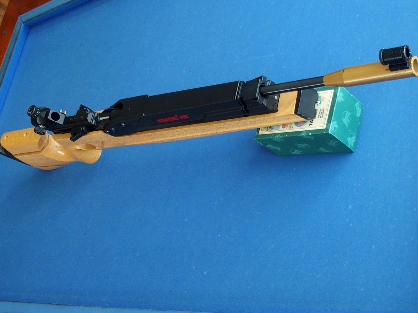 La primera pieza es una carabina de competicion Hammerli 450 que suelta el aire al finalizar la compresión, el resto funciona perfectamente. Incluye los elementos de puntería: diopter y túnel.