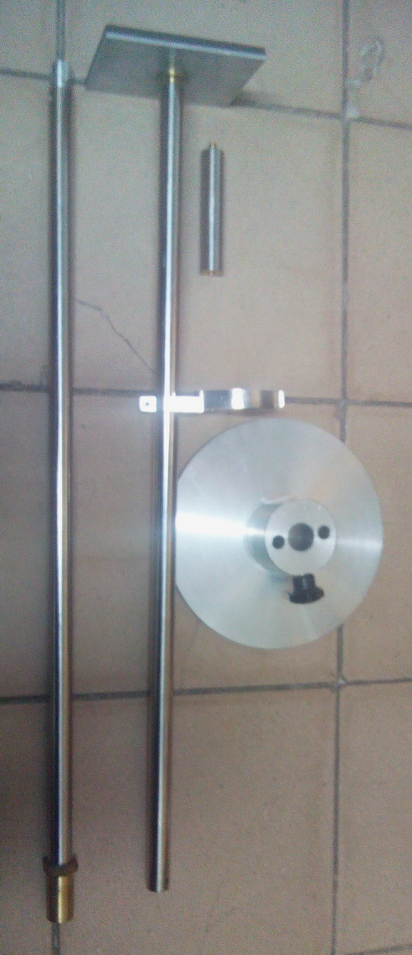 Base de duraluminio, tubo de acero inoxidable y placa de aluminio con goma para el arma. Pinza elástica de acero inoxidable, de altura regulable, para sujección de caja de proyectiles.
