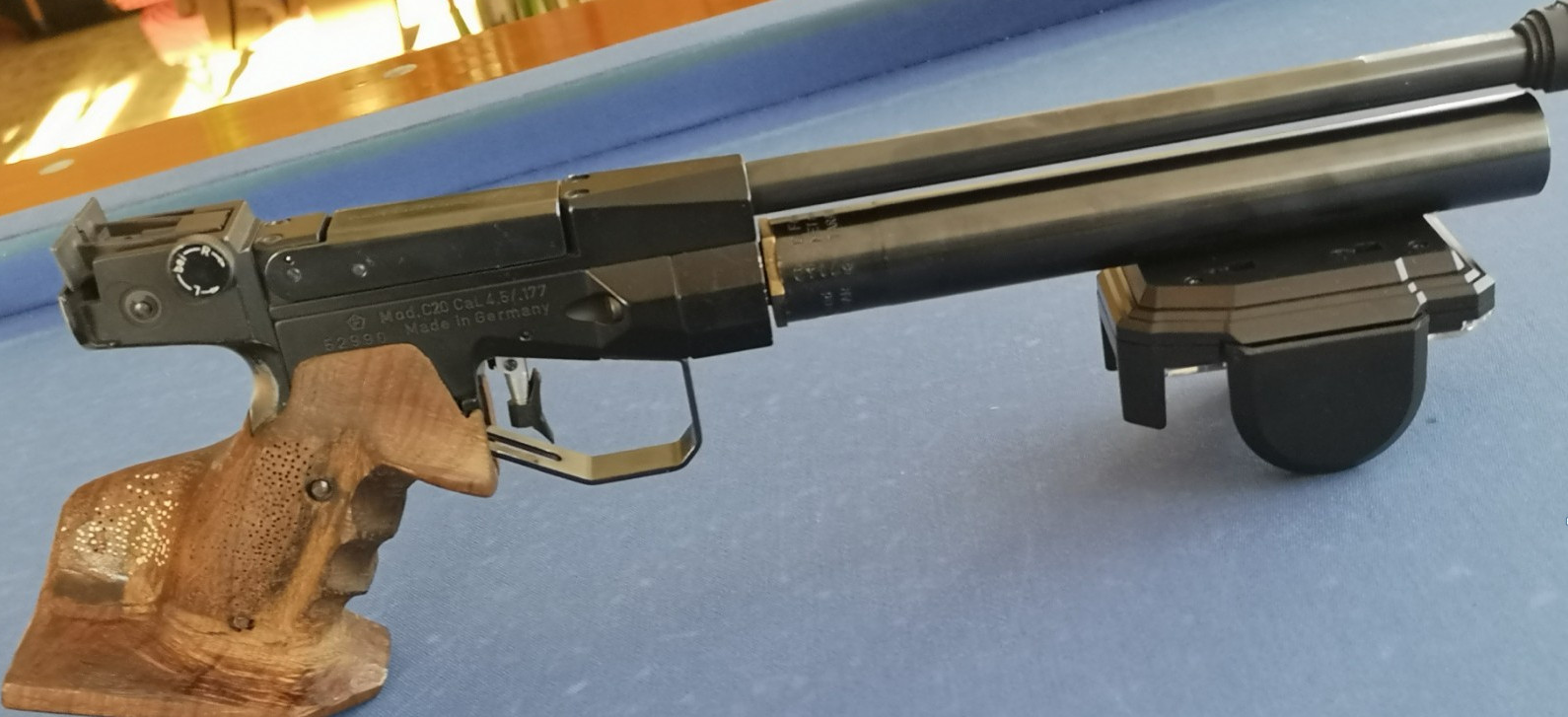 Vendo esta extraordinaria pistola de CO2 de competicion olímpica. Se trata del tercer modelo, mejorando las características de sus hermanas anteriores, mas primitivas pero también excepcionales, la modell 2 y la c10. En este caso, para la c20 incluyo tanto cacha de diestro como de zurdo, de tamaño M, ambas de probados fabricantes de cachas, en concreto una de ellas del superfamoso Cesareo Morini. Ahora incluyo el ultimo adaptador aleman para usar bombonas pequeñas de 12 gr. (mas de 90 disparos lo he comprobado). la flexibilidad con el adaptador es enorme ya que no hay que preocuparse al competir por la caducidad de las botellas, ademas el uso del botellin con la herramienta auxiliar de apriete y desapriete es sencillisimo y muy rapido. Asimismo incluye como extra un difusor en la salida del balin. Lleva varios contrapesos, mas uno especial para el adaptador a 12 gr.,vaciador de las bombonas, manual y 2 bombonas operativas de CO2. Por supuesto dispone de la opcion de tiro en seco para entrenamiento Todo ello guardado en estuche clásico. Su funcionamiento y precision es la típica de FWK ("mejor es difícil y de duración eterna"). Interesados ponerse en contacto a través de mi correo jmmurilhd@gmail.com mejor y mas rápido que a través de los mp