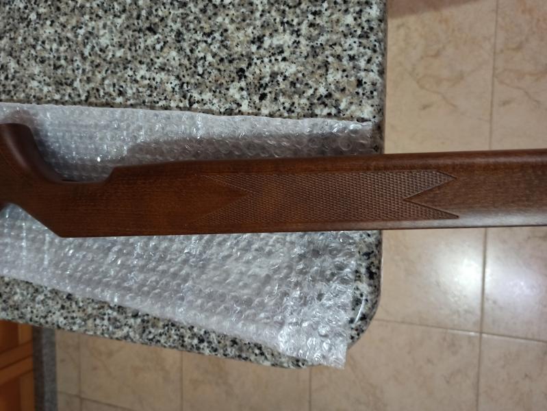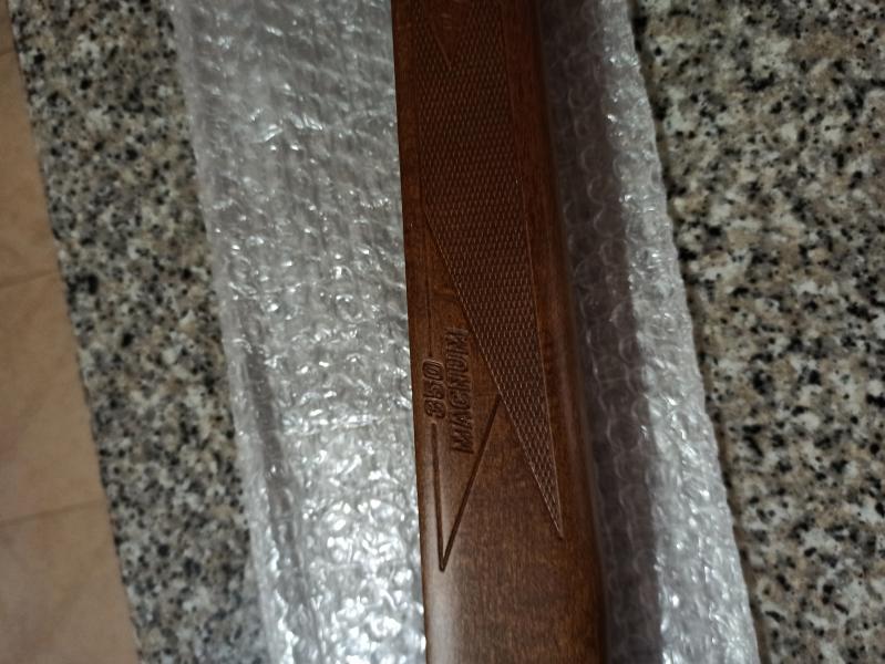 Hola, vendo culata de diana 350 Magnum t05 nueva sin estrenar, tal cual salió de fábrica. La diferencia con la culata t06 es que los picados tienen un diamantado más redondeado por lo que no son tan ásperos como los de la culata t06 , el logo de 350 Magnum es un poco más grande y con las letras más perfiladas, el tono de la madera también varia un poco respecto a la culata t06( un tono más nogal)