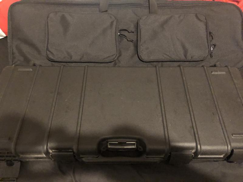 Vendo maletín marca Negrini con marcas de uso pero en muy buen estado, mide unos 90x30 (tenia guardada la rti priest con silenciador y cabía perfectamente) para los bullpup , y funda pielcu sin uso que mide 100x30.