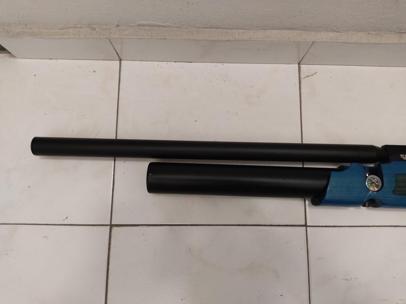 En calibre 5, 5 mm. Madera de color azul. Lleva una bomba Hill. Se envía. O recogida en mano en Vizcaya.
