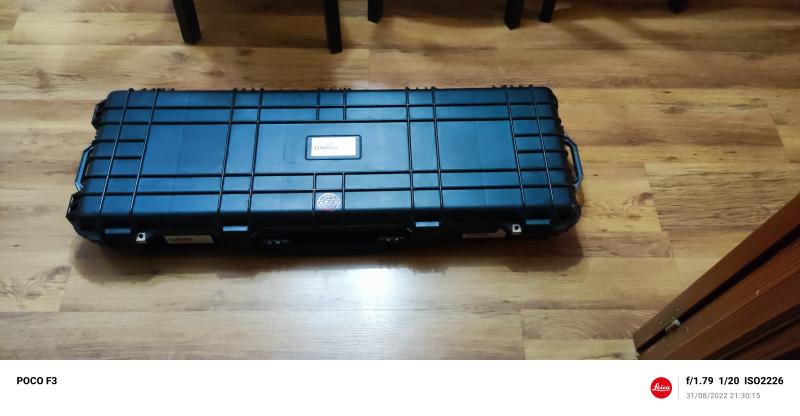 Maleta arma larga ,tres asas ,ruedas para el transporte,gran asa central y válvula .peso 9 kg aprox