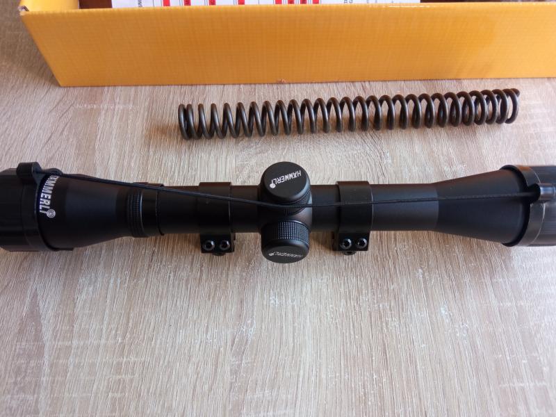 La carabina viene con pin stop para visor, un visor hammerli 4x32 y un muelle de 12J.