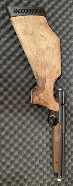 Tiene una culata que me sobró de una Bam, rebaje en el pistolet para zurdo. Tiene las cachas de plástico originales.