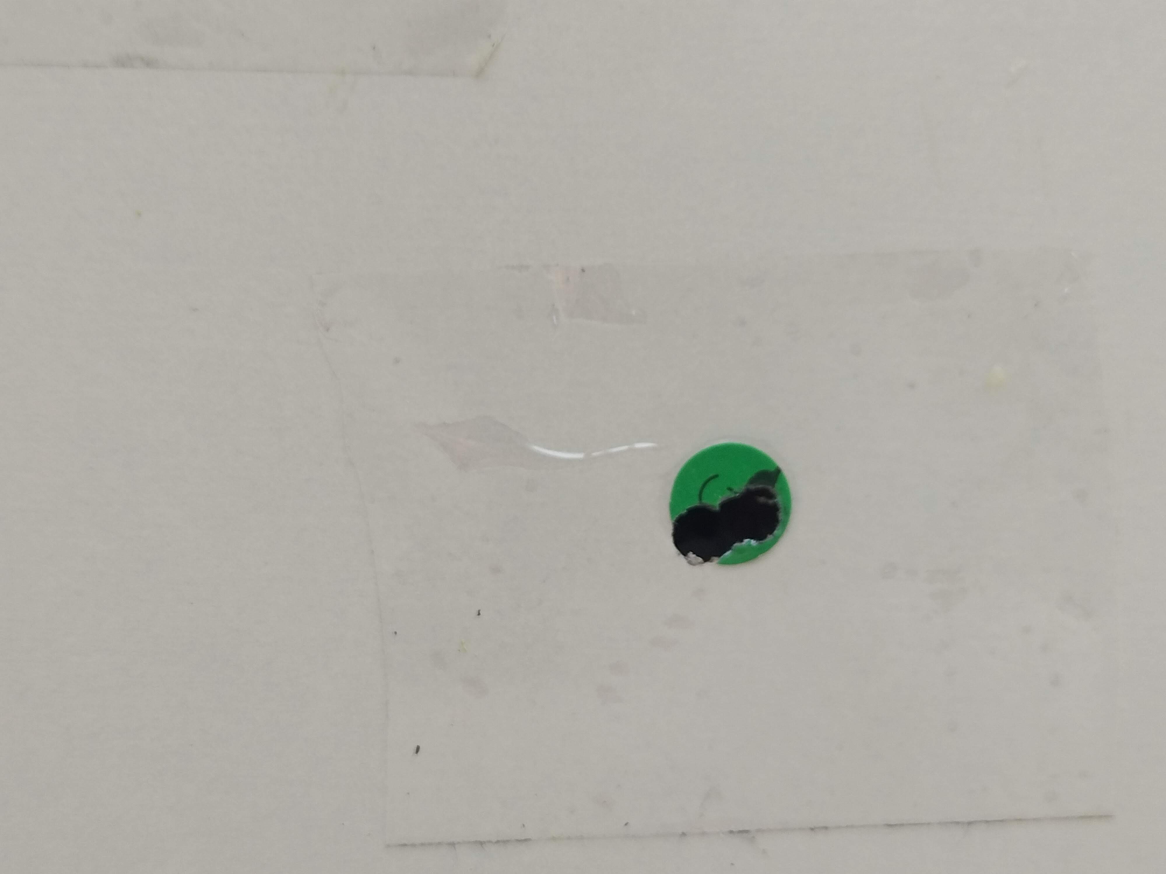 La pegatina verde es de 0,6cm de diámetro,la roja creo de 1cm de diámetro,creo que 5 disparos en cada una.