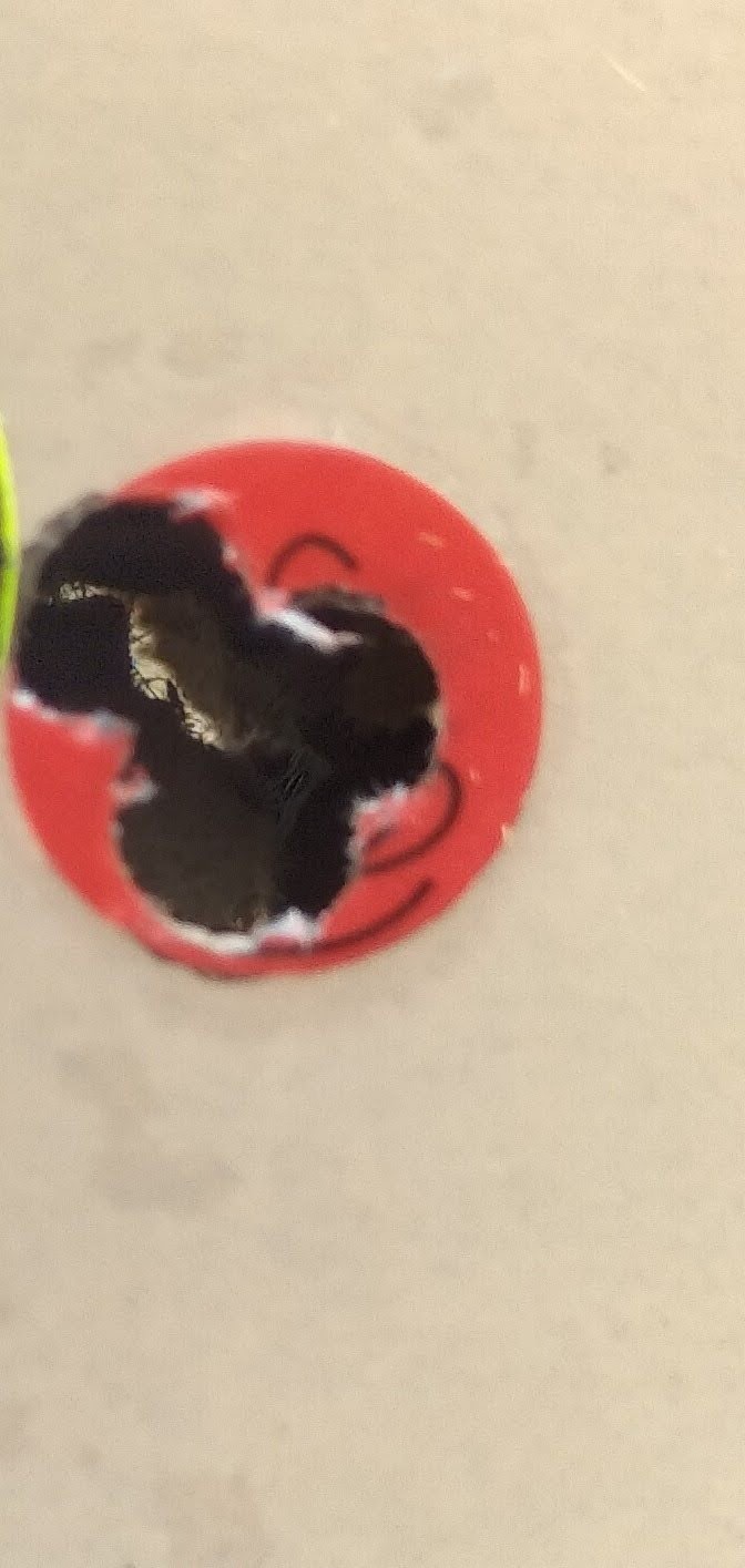 antoneau escribió:La pegatina verde es de 0,6cm de diámetro,la roja creo de 1cm de diámetro,creo que 5 disparos en cada una.
