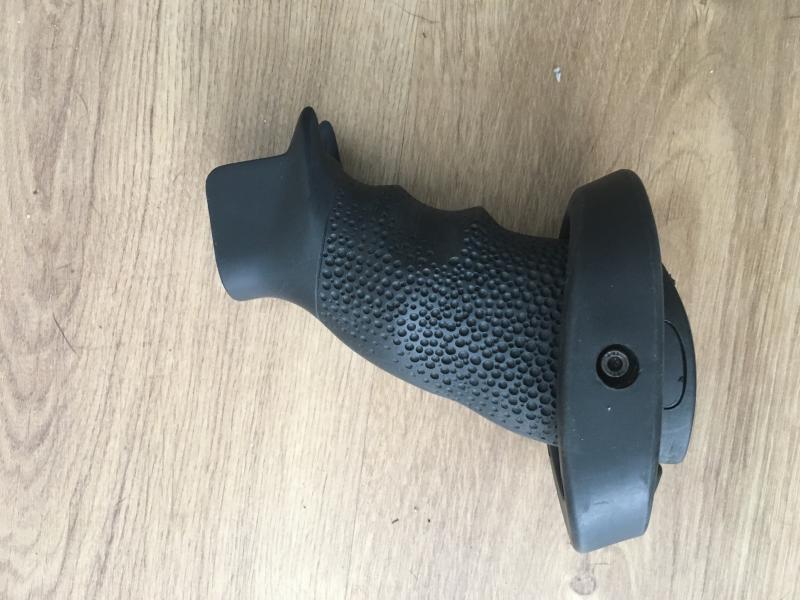 Lleva dos empuñaduras y raíl alargado para bipode u otro accesorio.