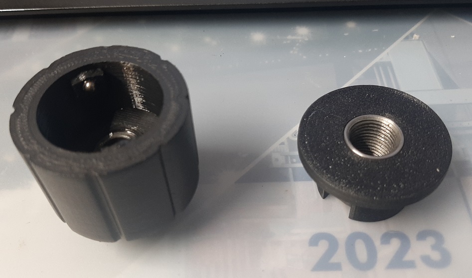 desarrollé estos adaptadores de desconexión rápida para moderadores, un con 38mm de diametro y otro con 31mm de diametro. El hilo es el mas comun en moderadores 1/2-20 UNF.