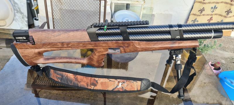 - El rifle Huben K1 es uno de los bullpup PCP semiautomáticos PICATTINI, MUNICION VARIA, CORREA PARA EL HOMBRO.