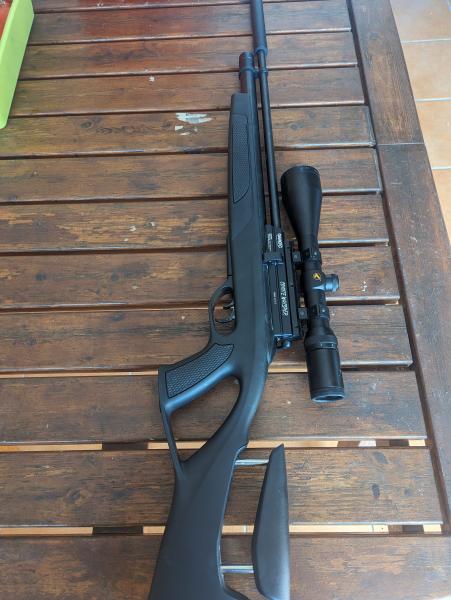 Gamo coyote, calibre 5,5 con visor gamo 3-12x56, la carabina tiene una semana, se compró y se cambia por no adaptarme al pcp. 375€