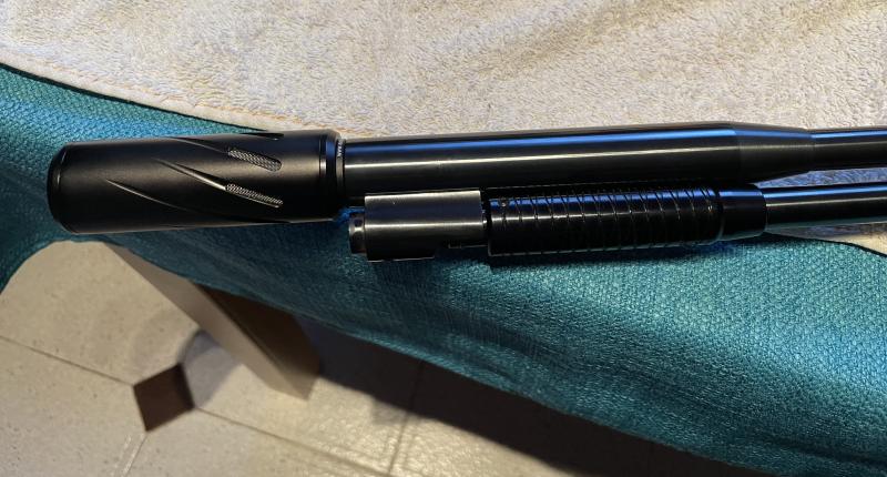 Detalle del adaptador 1/2 UNF con y sin tapón protector, y silenciador montado.