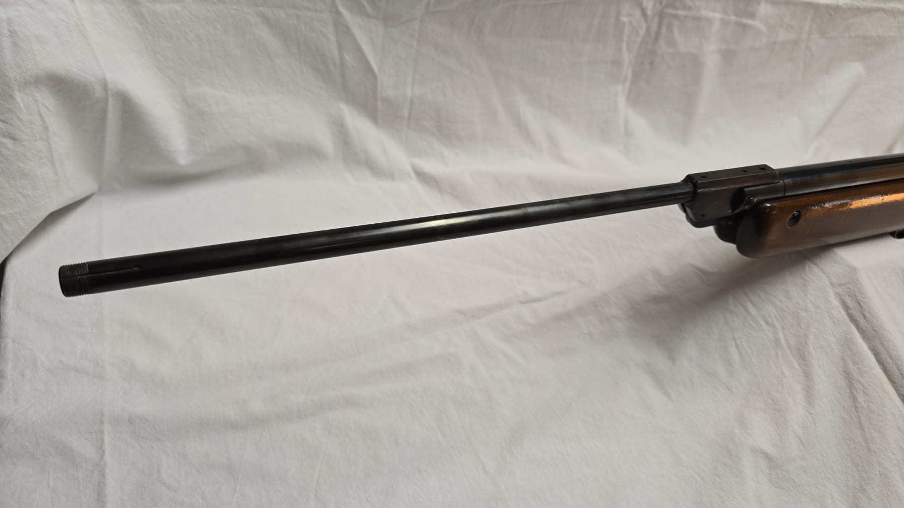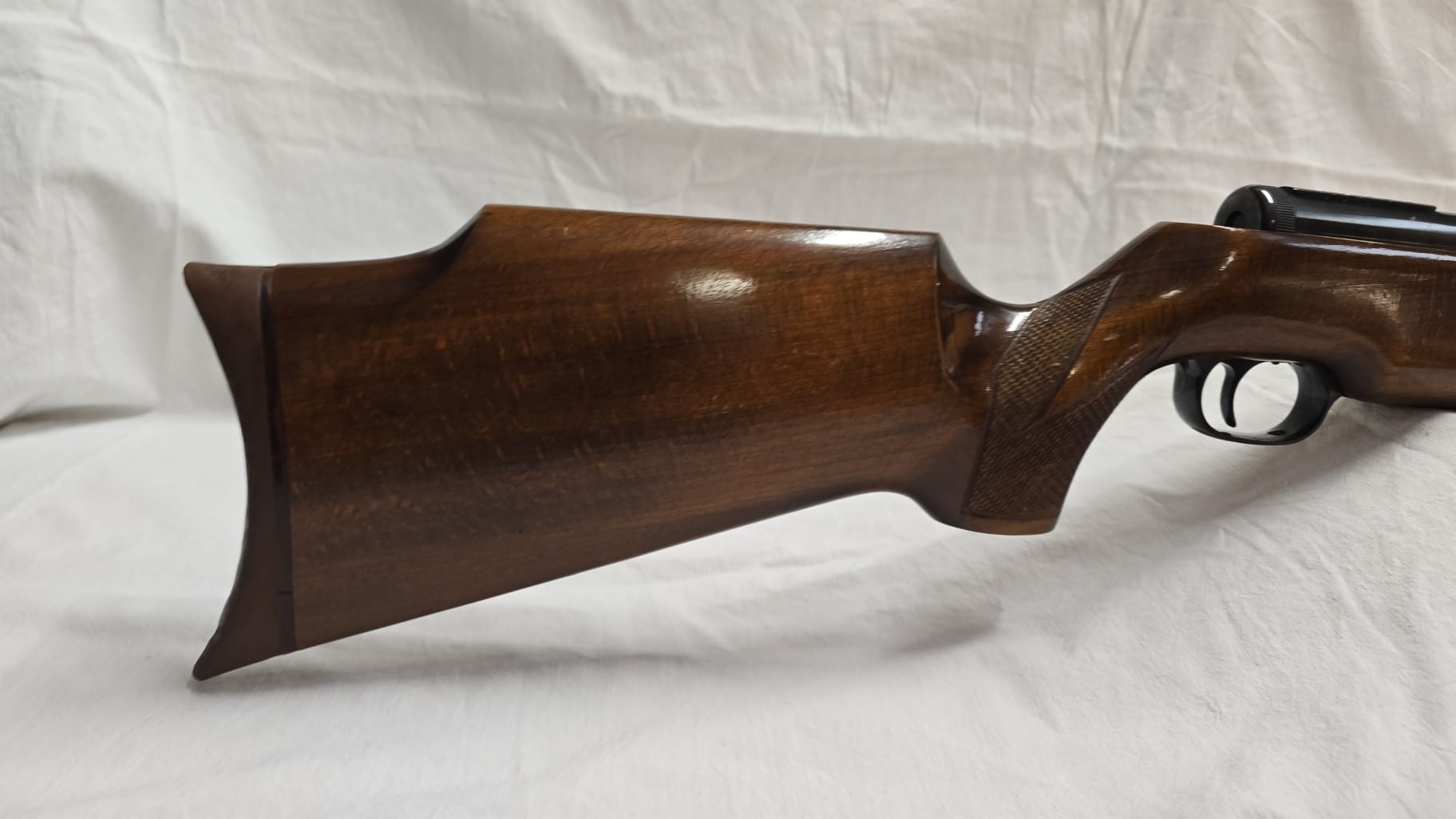 Para quien no la conozca, es calibre 4,5 y tiene una potencia de 7,5 julios. Es una delicia disparar con ella y a la vista y tacto. Madera de nogal y acero del bueno. De las de antes