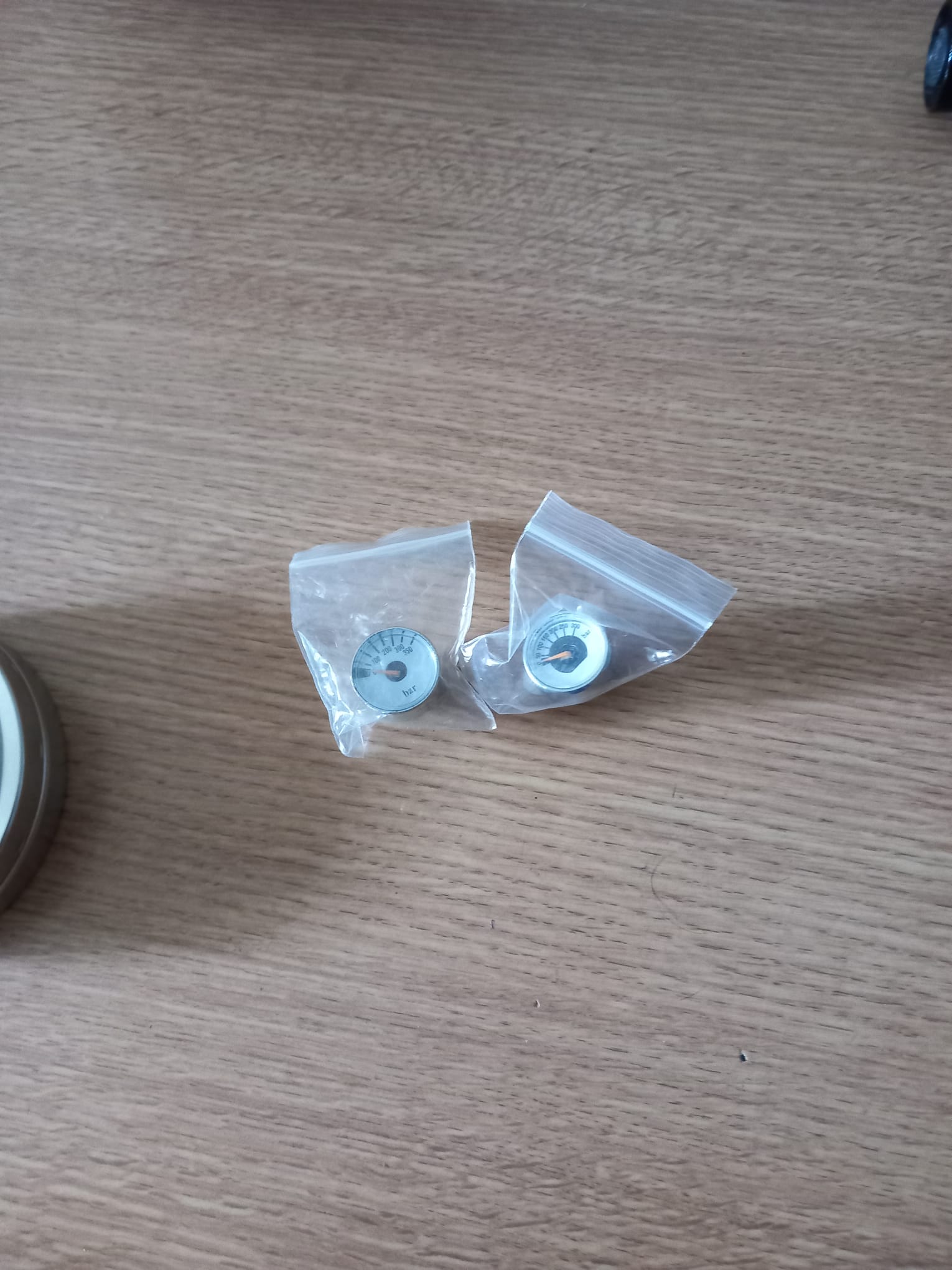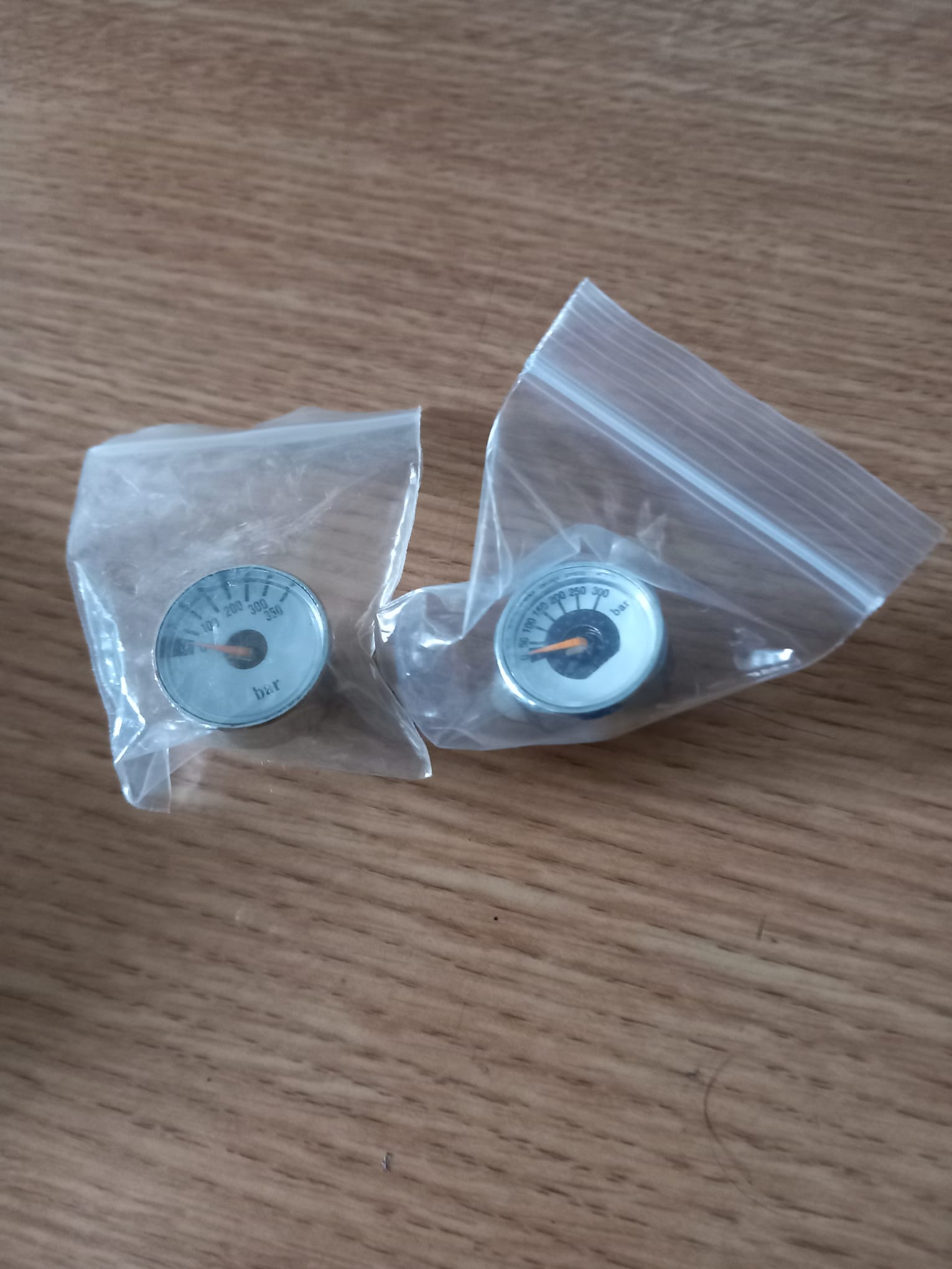 Hola, vendo, o cambio, dos mini manómetros de presión, sin estrenar. Escala en Bares, uno hasta 350, el otro hasta 300 Bares y ambos son de rosca M 10. Los que yo necesito, tendrían que ser de rosca M 8 y de 23 o 25 mm de diámetro. Para venta, los dos por 15 €, envío incluido. Si alguien tiene los de rosca M 8, los podría comprar.