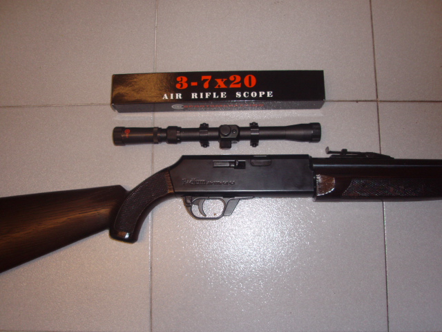 Se entrega con un visor de 3-7x20 TV nuevo a estrenar en su embalaje original (muy claro para lo sencillo de la óptica).