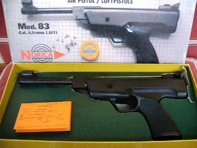 Vendo pistola Norica Modelo 83 en impecable estado. Made in Spain. Muy poco uso. Dispone de seguro automático que se acciona después de cada disparo. Alza totalmente regulable. La entrego en su caja original. El arma está en Pontevedra.