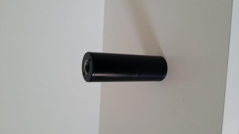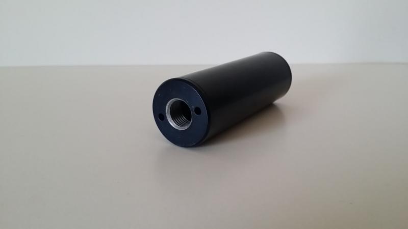 Silenciador lobo mini de aluminio anonizado. De 10 cms de longitud y tres camaras. Hecho por encargo. Rosca standard 1/2 unf. 50 euros portes incluidos.