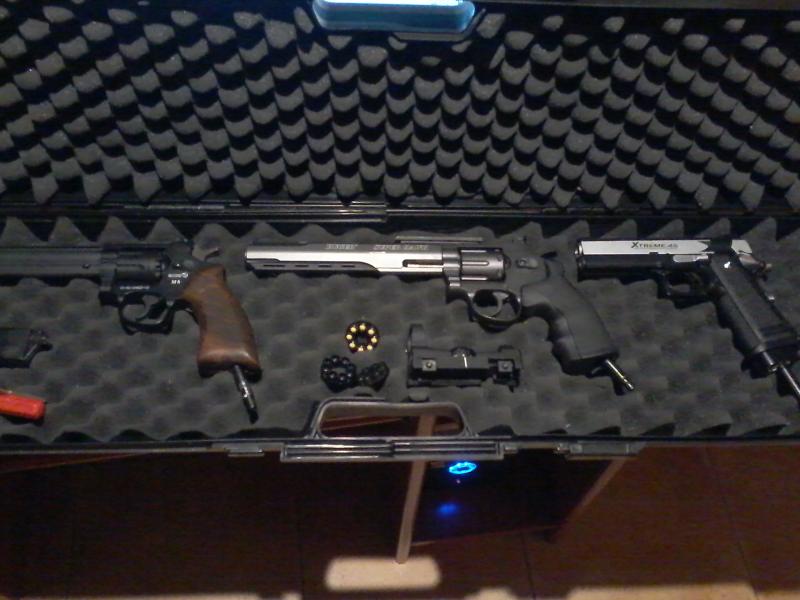 Vendo revolver airsoft muy potente, revolver gamo cañon 6" , bomba hill y bombona de aire comprimido de paintball.