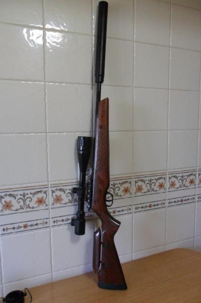 Se le ha recortado la funda del cañón aproximadamente 11cm y como se ve tiene colocado un silenciador.