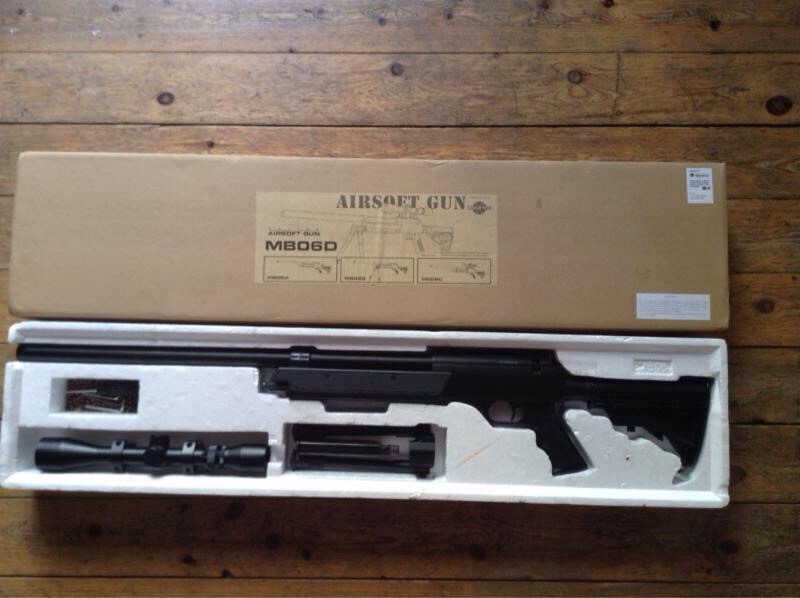 Hola vendo WELL MB06 Tiene dos semanas de uso y 0 partidas le usado para hacer diana. Viene con Kit potenciador que llega a las 500-520 Fps, bipode, visor, tico taco y herraminetas. Color negro. vendo porque este modelo no me gusta, me van mas rollo americanos. Perfecto estado usado 4 veces en 2 semanas