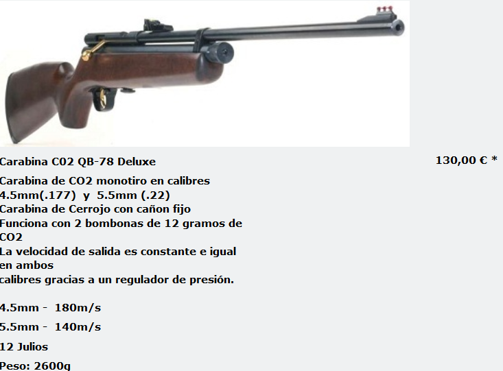 Re: Vendo Carabina QB78 deluxe co2 5,5mm