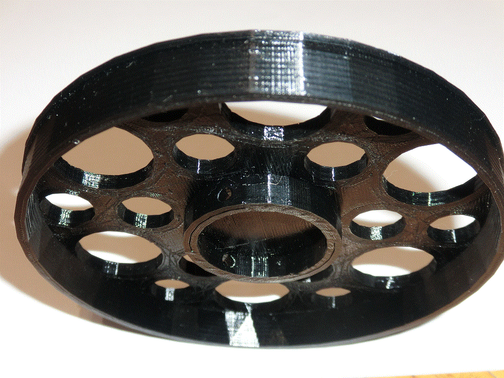 Vendo ruedas de paralaje de hasta 120mm realizadas en material plástico con impresora 3D a medida. El material presenta un aspecto negro brillante, el cual puede dejarse gris mate con una lija fina y de esta forma admite ser pintado, tan fácil como con un spray.